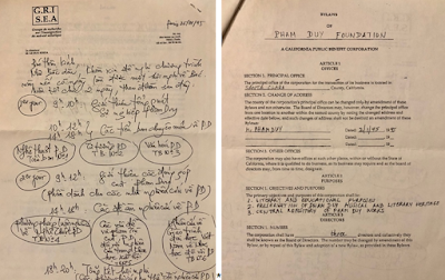 - Tổ chức Phạm Duy Foundation dự tính thành lập từ lâu, nay đã chính thức ra đời. Người sáng lập là chị Phan Tú Khanh ở Los Altos, CA-USA. Hiện nay đã có bản điều lệ (by-law) (1) để gửi tới những người mà tôi mời vào Hội Đồng Quản Trị (Board of Trustees) (2) Lẽ tất nhiên tôi kính mời bạn làm hội viên hoặc bảo trợ viên của foundation này. Có thể foundation sẽ chính thức công bố (hay mở kỳ họp đầu tiên) vào tháng 4-1995 để đánh dấu 20 năm hải ngoại. Và một trong những công tác đầu tiên là tổ chức một cuộc hội thảo (symposium) về Nhạc PD hay chỗ đứng của PD trong lịch sử tân nhạc.